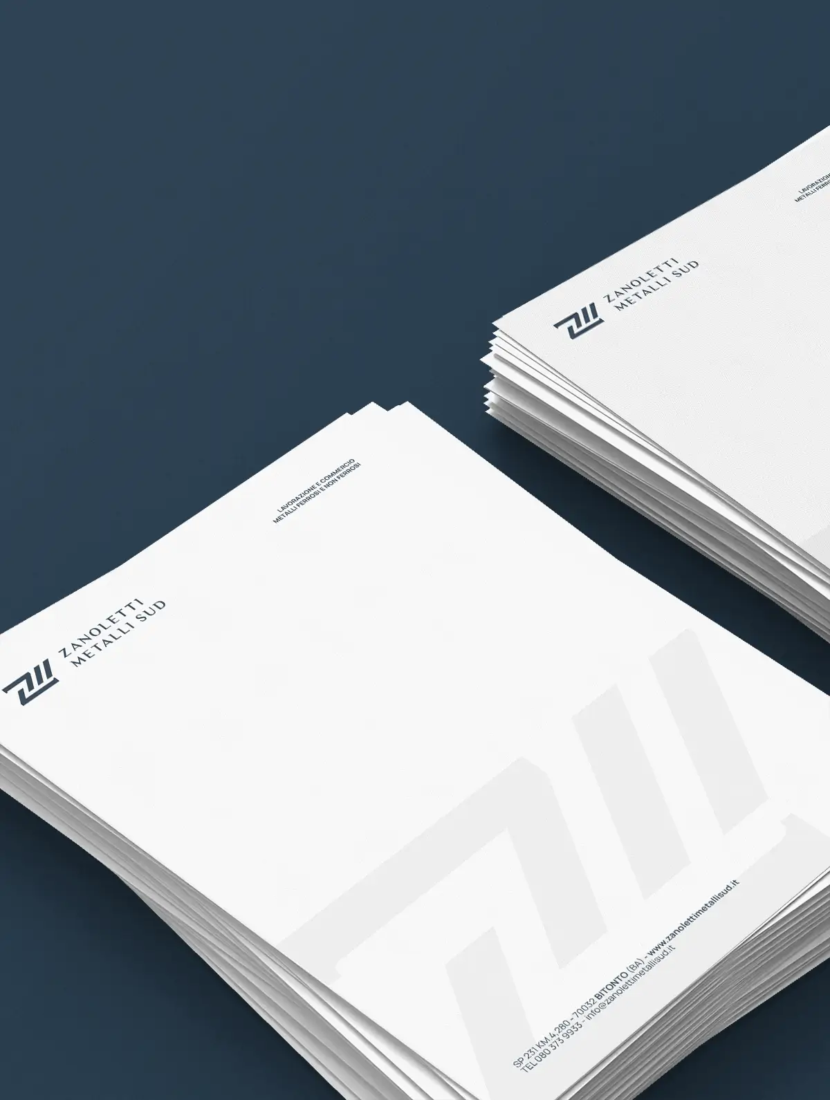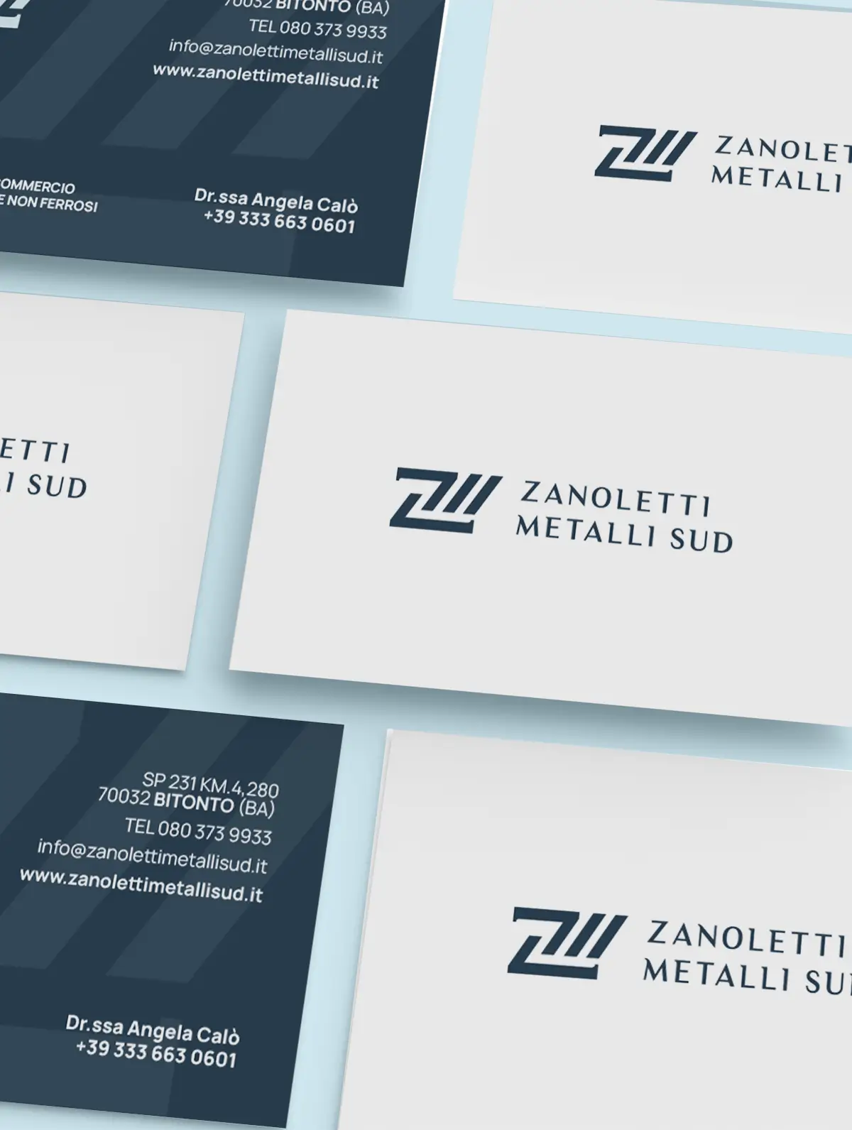 Zanoletti Metalli Sud, un'impresa centenaria fondata nel 1859, ha scelto la nostra agenzia per il restyling della sua storica identità visiva. Il progetto ha coinvolto la nostra squadra nell’ideazione e progettazione del nuovo marchio, insieme alla creazione di tutto il coordinato grafico offline associato.