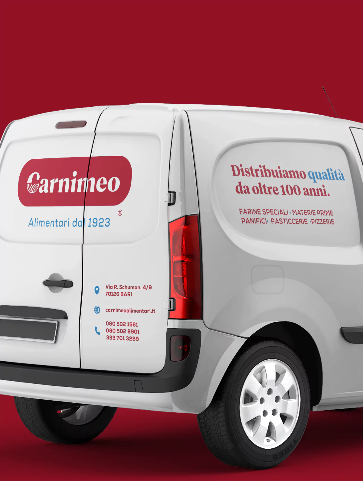 Dal 1923, riconosciuta come impresa storica dalla Camera di Commercio, Carnimeo è il punto di riferimento in Puglia per la fornitura di materie prime nel settore food. Il nostro contributo ha previsto l’ideazione del nuovo marchio e lo sviluppo di diversi progetti di graphic design per la comunicazione offline del brand.